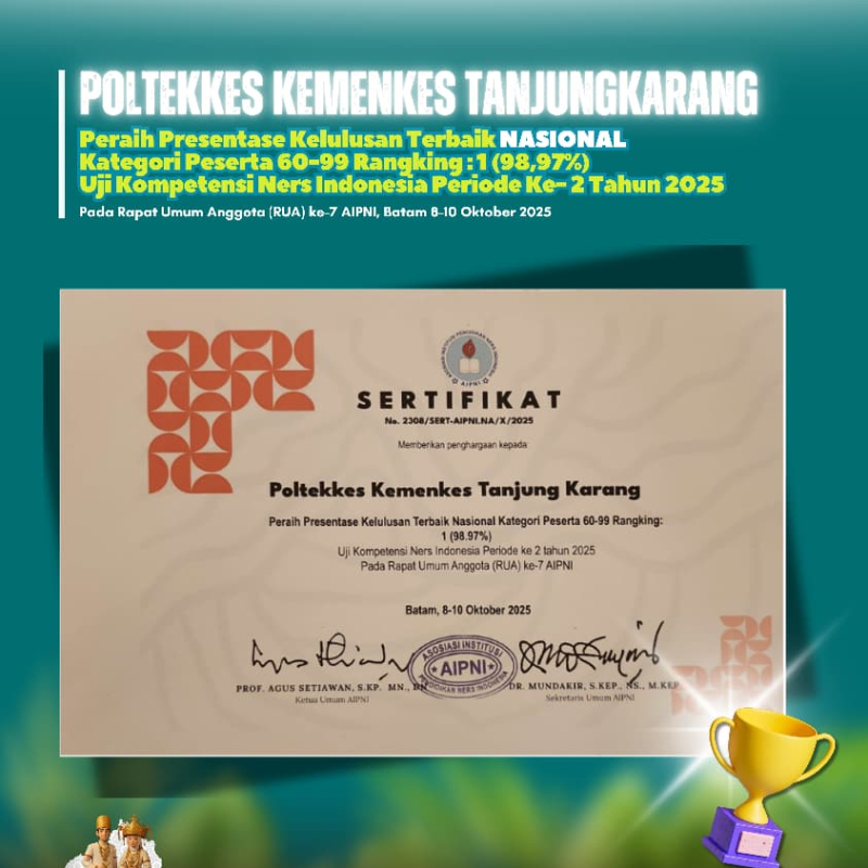 Assalamu'alaikum Warohmatullohi Wabarokatuh, Selamat datang di Portal Poltekkes Kemenkes Tanjungkarang. Website ini sebagai sarana publikasi untuk memberikan Informasi dan gambaran Politeknik Kesehatan Kementerian Kesehatan Tanjungkarang dalam melaksanakan pelayanan pendidikan kesehatan. Melalui website ini diharapakan masyarakat dapat mengetahui informasi tentang Poltekkes Kemenkes Tanjungkarang. DEWI PURWANINGSIH, S.SI.T, M.Kes