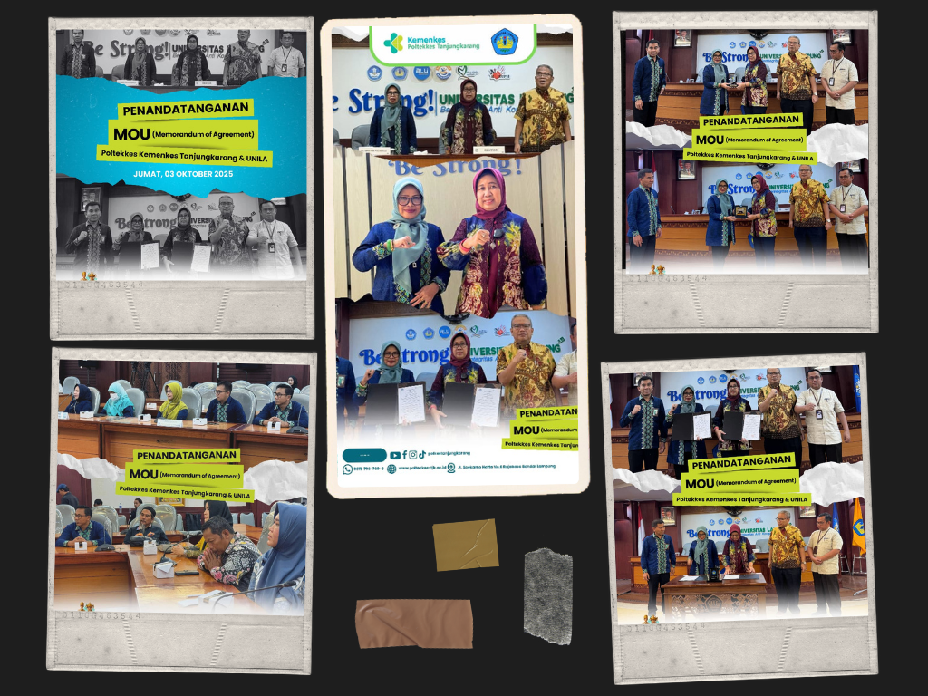 Pada Jumat, 3 Oktober 2025, telah dilaksanakan Penandatanganan Nota Kesepahaman (MoU) antara Poltekkes Kemenkes Tanjungkarang dan Universitas Lampung (Unila), bertempat di Aula Gedung Rektorat Unila.