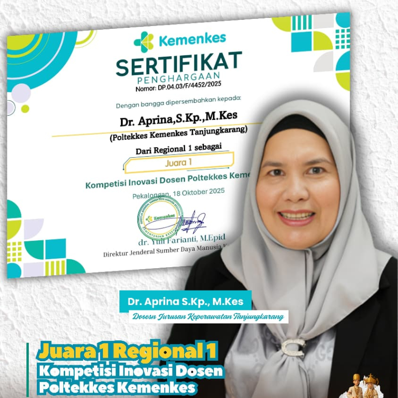 Assalamu'alaikum Warohmatullohi Wabarokatuh, Selamat datang di Portal Poltekkes Kemenkes Tanjungkarang. Website ini sebagai sarana publikasi untuk memberikan Informasi dan gambaran Politeknik Kesehatan Kementerian Kesehatan Tanjungkarang dalam melaksanakan pelayanan pendidikan kesehatan. Melalui website ini diharapakan masyarakat dapat mengetahui informasi tentang Poltekkes Kemenkes Tanjungkarang. DEWI PURWANINGSIH, S.SI.T, M.Kes